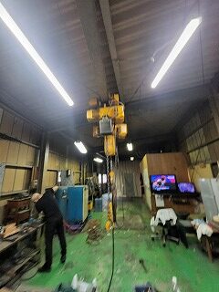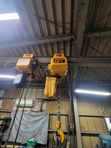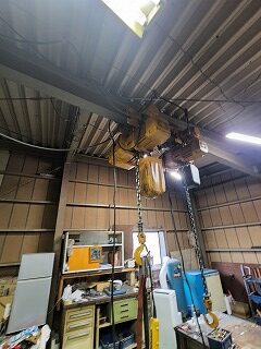 電動チェーンブロックと電動トロリにより、上下移動と横移動を可能にしています。