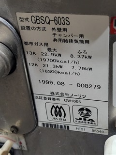 ノーリツ ガス給湯機器 ガスバランス形ふろがま GBSQ-603S は、工業用雑品として回収買取を行っています。