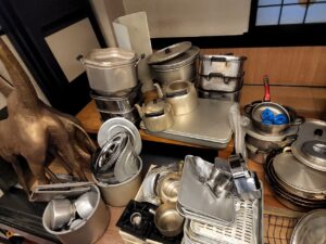 蒸し器、寸胴鍋、フライパンなどはアルミ製調理器具ですが、一般的には「アルミガラ」として買取りを行っています。