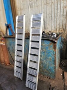 特徴としては、アルミ製で持ち運びが容易です。作業現場での移動や設置作業がスムーズに行えます。500キロまでの高い耐荷重があるので、耕運機や小型トラクターなどの積載に使用が可能です。収納性に優れコンパクトなサイズで、軽トラックの荷台にも収まりやすくくなっています。また倉庫内での保管や運搬に便利です。