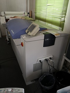サーマルプレートとは、回転するスキャナーで原稿を読み取り、そのデータをパソコンなどで出力することによって、多品種小ロットの大型印刷ができる機械です。