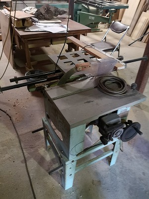 軸傾斜横切盤は、木材をのせて水平移動させることによって、のせた木材を切断する機械です。