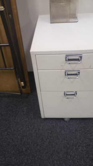 3段式キャビネット、ワゴン、袖机は、よく机の横に置いて事務机の面積を拡張するためなどに使われてきました。