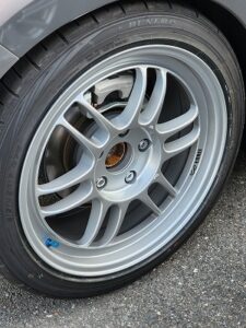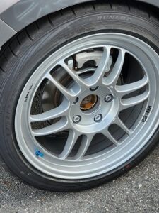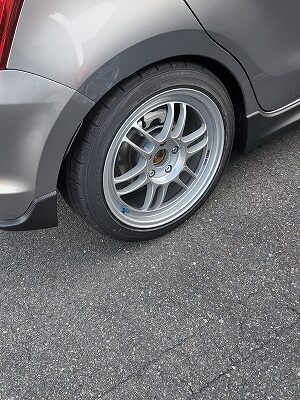 DUNLOP ENASAVE EC204とアルミホイールの組み合わせは、スイフトスポーツの足元をスタイリッシュにドレスアップするのに最適です。