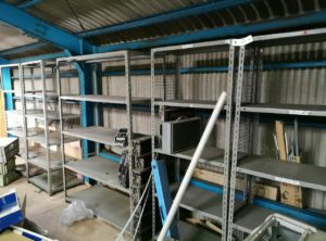当時は素材として入ってきたL字型アングル材を組み立てて棚板に木材を使用し、現在のような形状ではありませんでした。