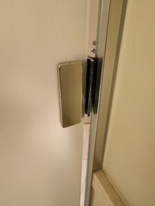 旗丁番は、扉を吊り下げるために使われる金具で、蝶番(ちょうつがい)の一種です。見た目が旗のような形をしていることから、その名が付けられています。