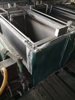 ステンレス製めっき槽は何年、何十年と使用される物なので非常にしっかりしたつくりにする必要がある。ましてや強酸、強アルカリの薬品を使うことも想定される為である。一般的にはゴムライニングをした鉄槽、FRPの槽やステンレス槽が多い。投入する薬品によって使い分けていることが多い。オーバーフローを設け液面の浮遊物の除去やろ過機を使用する事も必須となってくる。