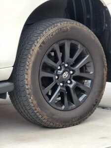 マットブラックエディション専用のブラック塗装アルミホイールは精悍な印象で、プラドによく似合います。