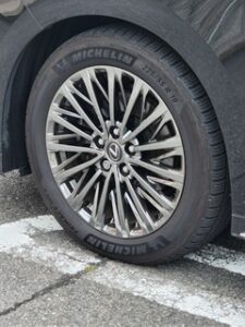 レクサス LM 500h 純正アルミホイール MICHELIN PRIMACY SUV+ 225/55R19 19インチは、軽量鍛造アルミホイールです。19インチでの軽量な設計と高鋼性を実現しています。プレミアムSUVコンフォートタイヤです。