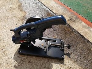 小型の切断機を固定して、ハンドルを持って上下することにより、簡単に切断加工が出来ます。