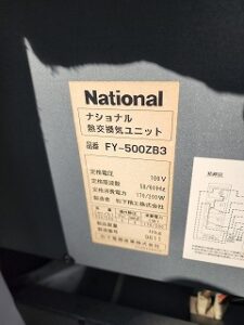 ナショナル 業務用熱交換気ユニット FY-500ZB3は、鉄屑(工業用雑品)として買取しています。