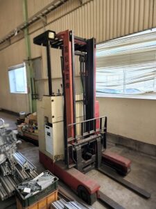 このフォークリフトは、特に限られたスペースでの荷役作業に強みを発揮し、効率的な運搬作業をサポートします。