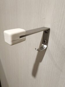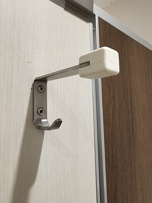 戸当は、主に、トイレや更衣室などの限られたスペースで有効活用されています。ドアが開いたときに、壁や隣接する物への衝撃を和らげる役割を果たします。このタイプは、戸当と一体化したフックが付いており、ドアを壁に固定できるのが特徴です。これにより、ドアが不意に閉まらないようにすることができます。