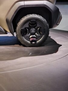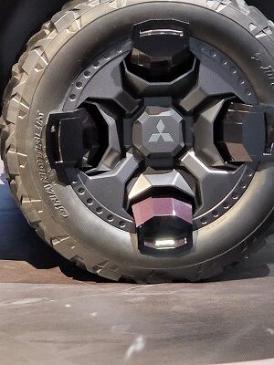 コンセプトに装着されている「DUNLOP GRANDTREK」は、オフロード性能と舗装路での快適性を兼ね備えた、SUV向けの高性能タイヤです。デリカ D