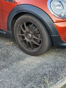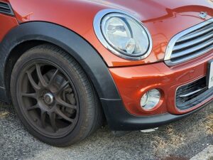 ミニクーパーに装着される17インチのYOKOHAMA 205/45R17タイヤとRAYS VOLK RACING ZE40ブラックカラーのアルミホイールの組み合わせは、非常にスポーティでエレガントな外観を演出します。VOLK RACING ZE40は軽量で高強度を誇る鍛造ホイールで、特にスポーツ走行やパフォーマンス重視のユーザーに人気があります。ブラックカラーのデザインはミニクーパーの独特なスタイルにさらに個性を加え、走行性能だけでなく、ビジュアル面でも目を引く存在感を持っています。