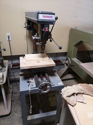 主軸のラジアルアームというアームが自由に動くので、ボール盤と比べて色々な位置に穴あけ加工ができます