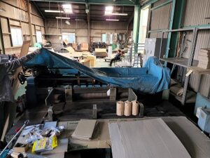 ロータリースリッター 井上工業は、段ボールの加工に使用される機械で、段ボールシートを指定したサイズに正確に切断するための装置です。この機械は、段ボールの製造工程において重要な役割を果たし、特に段ボールのスリット(切り込み)や折り目をつける作業に特化しています。