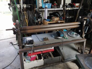 小さくて薄い板を円筒加工する時にミニ三本ロールを使います。
