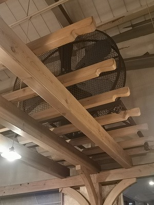 巨大な羽を動力で回転させて屋内に滞留する熱気を拡散し、温度を下げるサーキュレーターとして設置したりするものです。