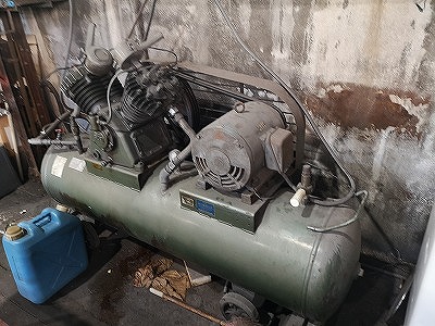 写真のように5馬力ぐらいのエアーコンプレッサーであれば、『工業用雑品機械屑』として回収買取りを行っています。