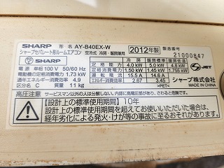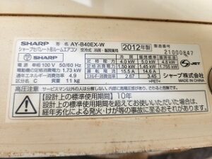 シャープのルームエアコン「AY-B40EX-W」は、工業用雑品として回収買取いたします。