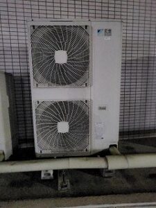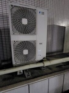 設置場所を選ばない縦型の省スペースの室外機なので、設置場所を選ばないコンパクトな設計となっています。