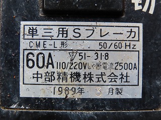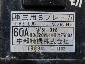 中部精機 単三用Sブレーカ CME-L形は、単相3線式回路向けの安全ブレーカーです。