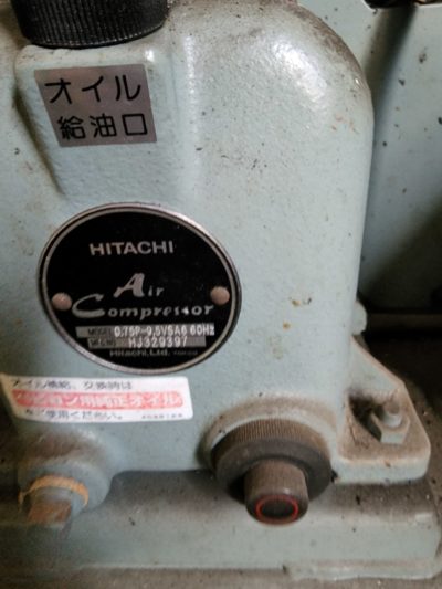 日立製作所ベビーコンプレッサー3馬力は、1m×50cmぐらいのスペースがあれば楽に収まるので、機械のすぐ横に設置されていることがよくあります。
