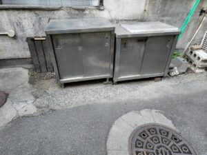 業務用ステンレス調理台は、まな板などを置いて調理作業をすることができ、調理台の下はキャビネットとして物を保管することができます。