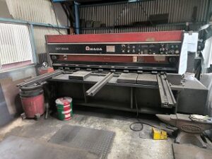 用途としては、主に後板やステンレス板、アルミニウム板の板材を、直線上の指定のサイズに切り出す際に使用されます。プレス加工や曲げ加工などのための(ブランク材)を準備する工程として重要な工程となります。