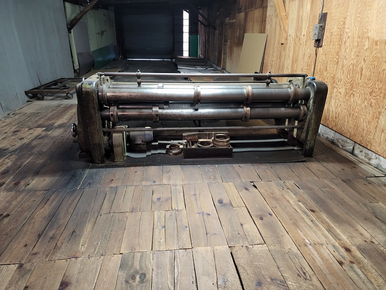 ダンボールロータリースロッターは、ダンボールシートをカットしたり罫線・折り線を入れたりする機械です。