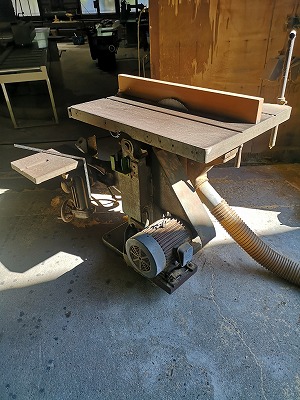 昇降盤とは作業台の上に材料をのせ、丸鋸の刃を上下させて板をカットする機械です。