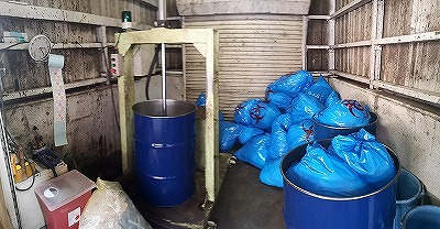 プレス機には、空気圧や油圧などいろいろな種類がありますが、減容固化用の油圧プレス機は、『機械屑』として回収買取りを行っています