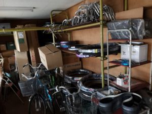 自転車屋さんの廃業に伴い、ギアやハンドル、かごなどの自転車部品が出てくることがあります。