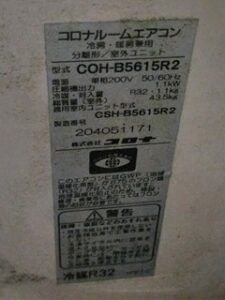 鉄屑(工業用雑品) コロナ ルームエアコン 冷房・暖房兼用 分離形/室外ユニット COH-B5615R2