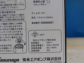 鉄屑(工業用雑品) 安永エアポンプ ディスポーザー YD200BWA
