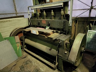 極東工業 プレス切断機は、上刃と下刃の間に板材を通して切断する機械です。