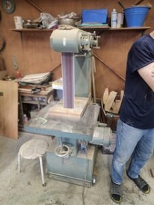長谷川鉄工所の「バーチカルプロフィールサンダー VPS-3」は、木材の複雑な曲線や凹凸部分を研磨・仕上げるために設計された、バーチカル(垂直)型のサンディングマシンです。特に木工、家具製作、建具製造の分野で活躍する機械です。