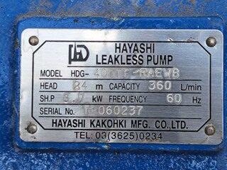 鉄屑(廃モーター屑) 林化工機 リークレスポンプ HDGシリーズ HDG-405TF-RAEWB