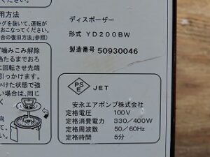安永エアポンプ ディスポーザー YD200BWは、鉄屑(工業用雑品)として買取を行ってます。