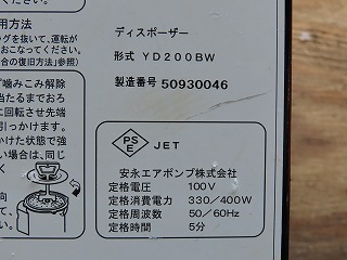 鉄屑(工業用雑品) 安永エアポンプ ディスポーザー YD200BW