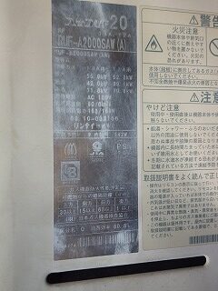 20号なので1分間に20リットルのお湯を給湯する能力があります。