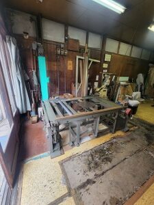 東海機器工業 東海アロー框縫機 KM-1型は、畳の製造機か載せない框縫性を行うための機械となっています。畳と畳につける框縫工程を自動化する畳業界では定番の機械となっています。