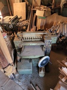 自動カンナ盤(オートプレーナー)は、木材加工機械の1種で木材の厚さを均一に仕上げるために使用されています。自動カンナ盤は、定盤、刃物、送り機構、昇降機構これらの構成によって成り立っています。