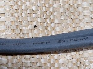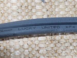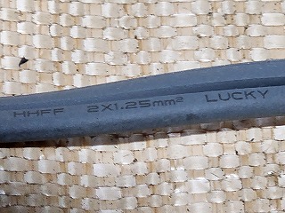 〈PS〉E JET HHFF 2×1.25mm² LUCKY UNITED -F- ゴム平行コードは、LUCKY UNITED株式会社が製造した。HHFF(2種EPゴム絶縁クロロプレンゴムシース平行線)ゴム平行コードです。