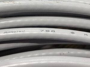 カワイ電線 絶縁ビニルシース同軸ケーブル S-5C-FB JE0507017は、河合電線株式会社が製造している同軸ケーブルです。同軸ケーブルは中心導体、絶縁体、外部導体、シースから構成されるケーブルで高周波信号の伝送に使用されています。またこのケーブルが主に衛星放送の受信に使用されています。また一般的な家庭用のアンテナケーブルとしても広く普及しています。