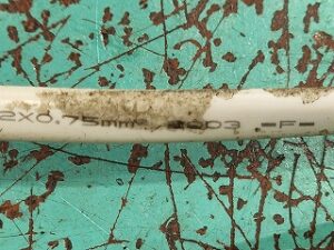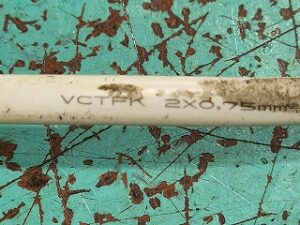 この電線は、2芯で、各芯の導体断面が、0.75㎟のビニールキャプタイヤ丸型コードです。