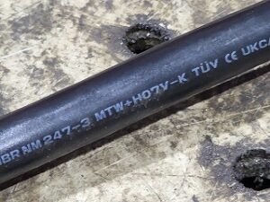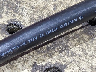 日合通信電線 〈PS〉E JCT CCC A025981 NICHIGOH CORP 60227IEC02 RV 450/750V I006638/2014 OCP-0004 NICHIGOH CABO FLEXIVEL 1×16mm² 450/750V JAPAO 247NM02-C5-BWF-B/NBR NM 247-3 MTW+H07V-K TUVは、日号通信電線株式会社によって製造された日本、国際企画に適合した高品質な電線です。幅広い産業用の用途に使用される電線製品です。