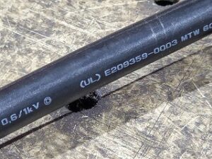 この電線は、 日合通信電線 の柔軟性多芯ケーブルで、IEC規格及び日本の電気用品安全法に基づく認証を合格しています。450/750Vの定格電圧で使用が可能です。中国向けのCCC認証も取得をしています。工作機械用電線(MTW)とビニル絶縁電線(H 07 V-K)の組み合わせです。この電線は、MTW & H 07 V-Kの規格により高い柔軟性を持つ多芯ケーブルです。