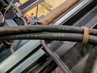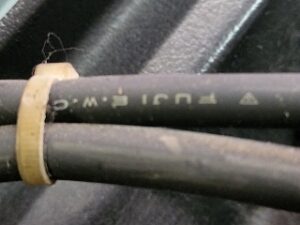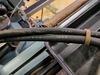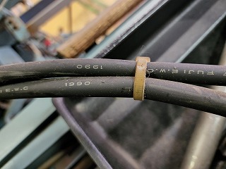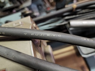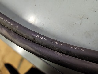 ラバロン VCT 1.25 FUJI E.W.C 1990 移動用ケーブルは、富士電線工業が開発した耐熱性、耐油性、大摩耗性に優れたゴム状の被覆材です。VCT: Vinyl Cabtyrは、ビニールキャブタイヤケーブルの略で柔軟性があり移動用電気機などに使用されています。導体の断面積は1.25m㎡です。
